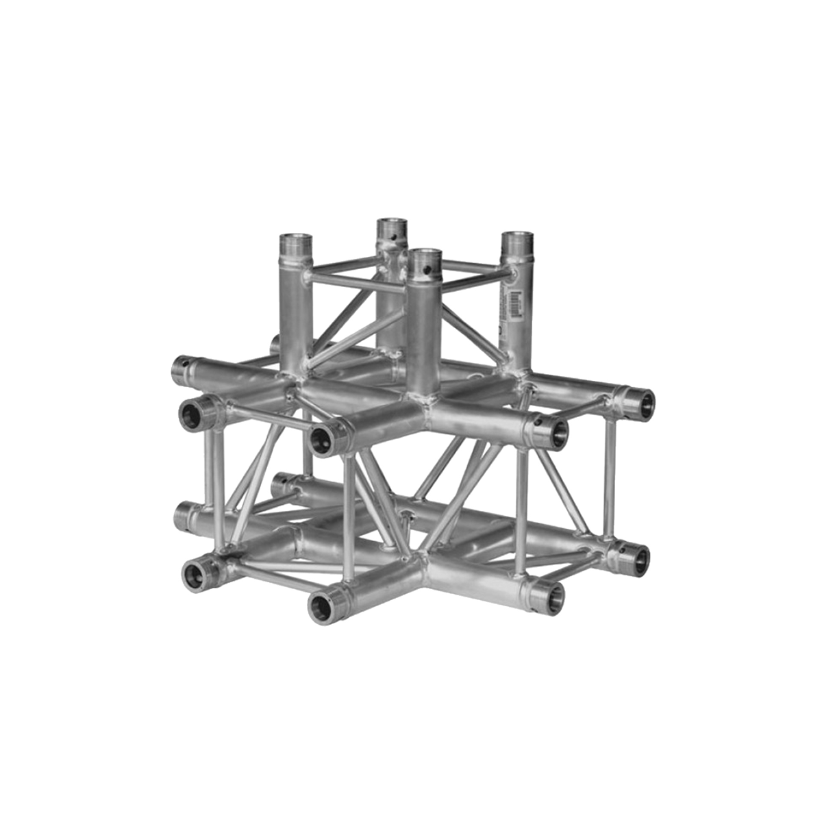 Bouw snel en professioneel met de Prolyte H30V C020. De Prolyte H30V C020 is een 4-weg hoekelement uit de populaire H30V truss-serie. Deze hoekverbinding maakt het mogelijk om truss-constructies in meerdere richtingen te koppelen, ideaal voor complexe podium- en riggingopstellingen. Gemaakt van hoogwaardig aluminium, licht van gewicht en eenvoudig te monteren met de meegeleverde conische koppelingen.